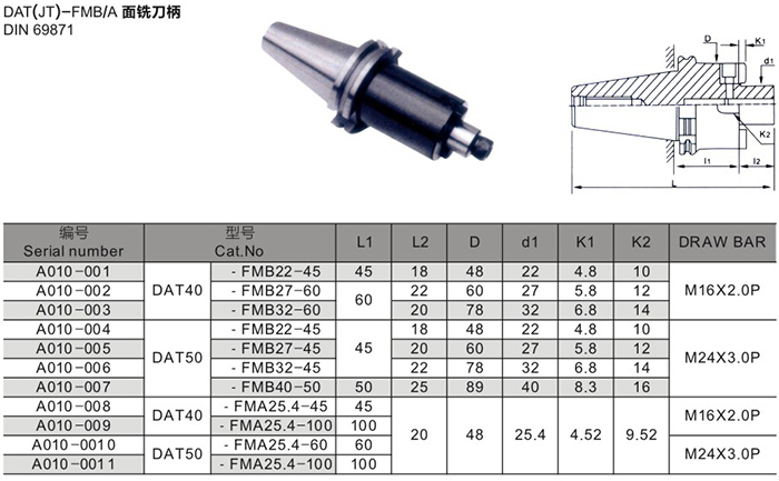DAT(JT)強力型銑刀柄